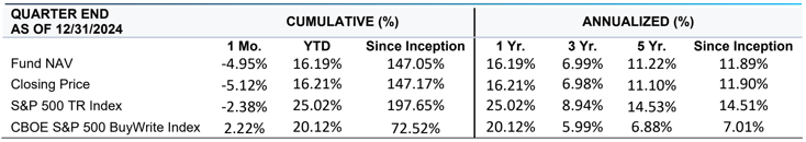 The portfolio held no covered calls2 at the end of December 2024.