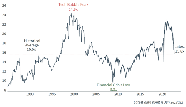 Stock market valuations are at their most attractive level in years. Rather than being close to all-time peaks last seen during the dot-com bubble, the forward price-to-earnings ratio, a valuation measure that compares the price of the index to earnings estimates, on the S&P 500 is now back to historical averages.