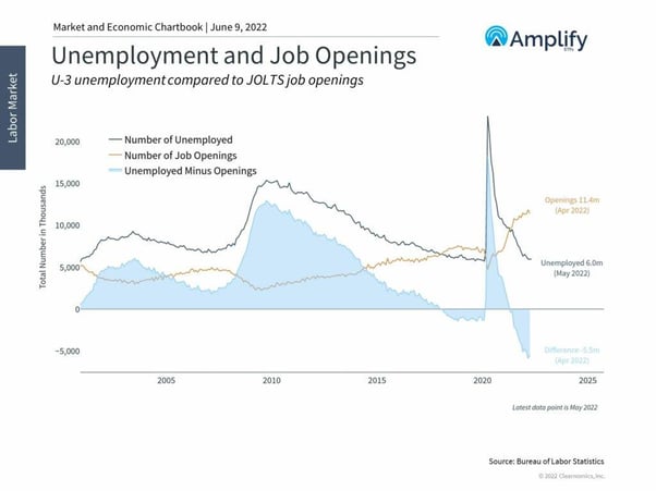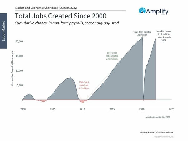 Specifically, last month’s jobs report showed that the economy added 390,000 new jobs in May, exceeding what economists had expected. In total, more than 95% of the jobs lost during the pandemic downturn have been recovered, including in hard-hit industries leisure and hospitality. This monthly gain is also well above the historical average of 148,000 per month over the past ten years. This has kept unemployment at 3.6%, one of the lowest levels in history, and near prepandemic lows.